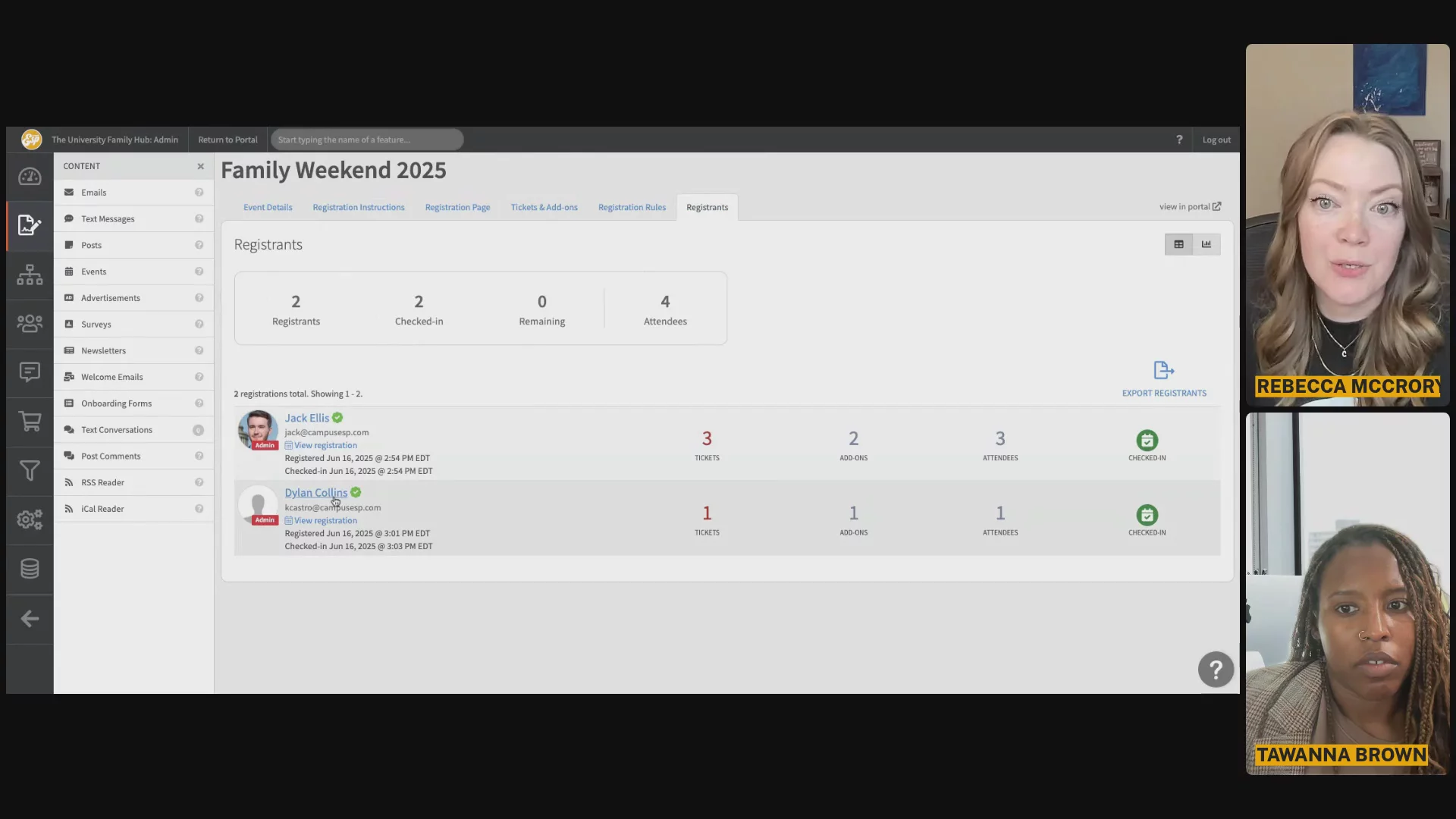 Planning for Family Weekend? Join us for a hands-on walkthrough of how to make the most of your CampusESP portal during one of the biggest events of the year. In this session, you'll learn how to create and manage Family Weekend events with built-in registration, promote them using targeted communications, and streamline the day-of experience with seamless Event Check-in. We’ll also explore how to build an effective communication flow leading up to, during, and after Family Weekend - keeping families informed, engaged, and excited. Whether you're starting from scratch or fine-tuning your current process, this session will give you the tools to turn Family Weekend into a well-orchestrated experience for your campus community.
