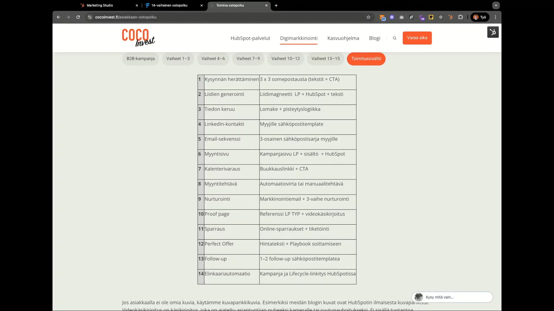 “Kun digitaalinen markkinointi alkoi yleistyä, puhuttiin vain uutiskirjeistä ja yksittäisistä mainoskampanjoista. Nyt voimme rakentaa tarkkaan suunnitellun ostopolun, jossa jokainen vaihe ohjaa asiakasta kohti kauppaa. Näytän konkreettisesti, miten 14 osa-alueesta syntyy täydellinen digitaalinen ostopolku HubSpotissa.”
