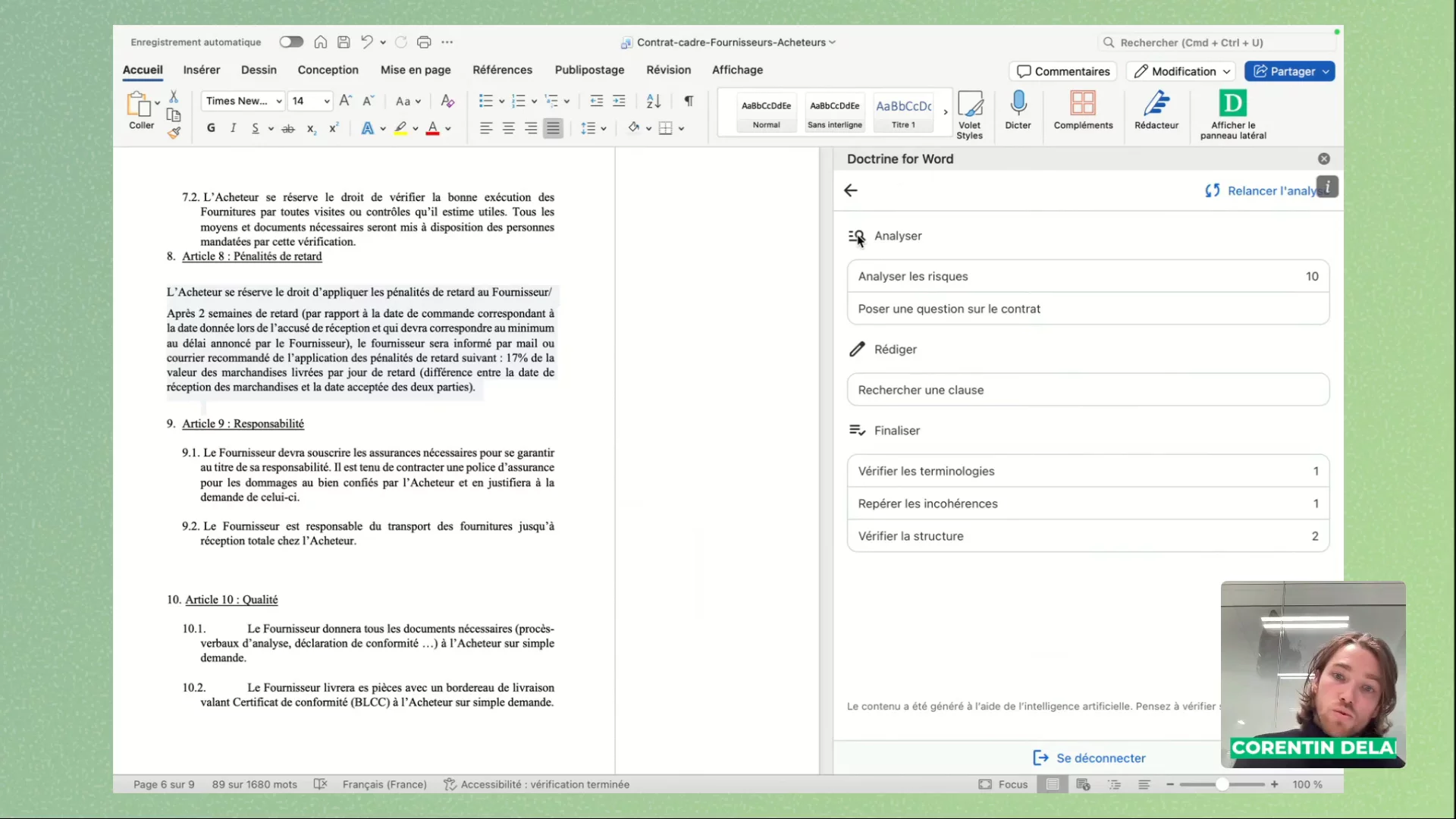 - Vérifier juridiquement chaque clause et les incohérences du contrat, en quelques secondes