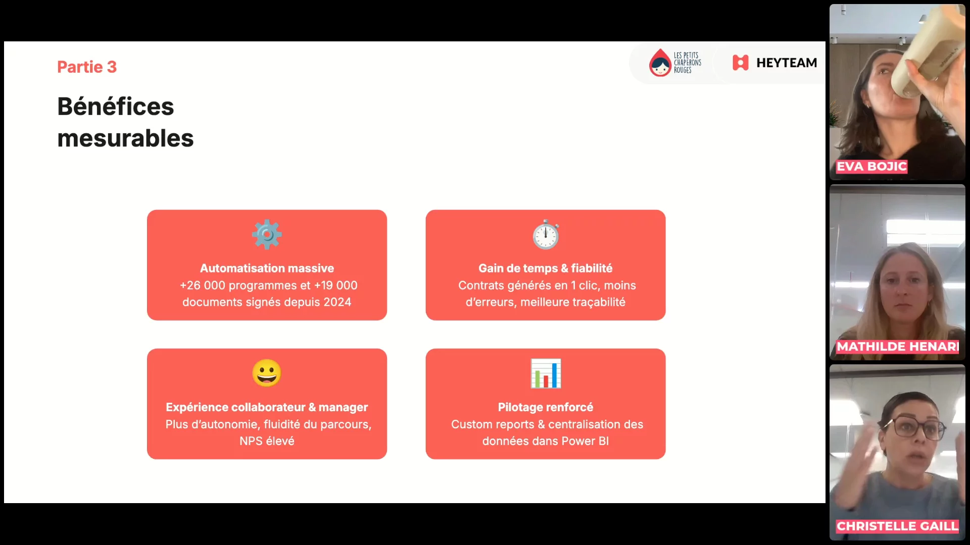 Découvrez le témoignage de deux leaders RH de chez Les Petits Chaperons Rouges sur la digitalisation et l'automatisation de la gestion de leurs documents RH. Christelle Gaillardet, Directrice des Ressources Humaines Opérations, et Mathilde Henard, Responsable SIRH, accompagnées d'Eva Bojic, Expert Implémentation chez HeyTeam, partageront leur expérience.