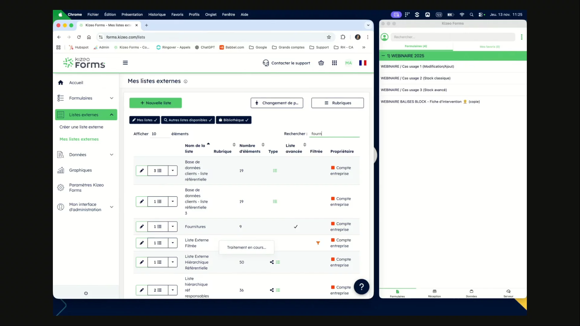 Simplifiez vos processus avec les Listes Avancées ! Apprenez à automatiser vos bases de données, trackez vos stocks en temps réel et transformez vos listes externes en un outil puissant pour booster votre productivité quotidienne avec Kizeo Forms.