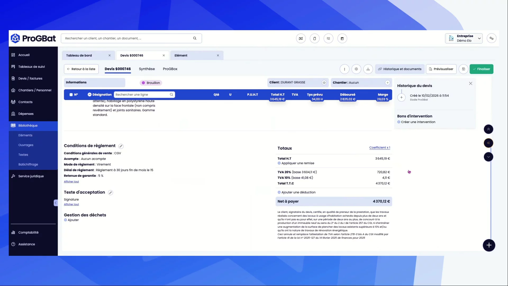 Du chiffrage au règlement : sécurisez vos chantiers avec ProGBat