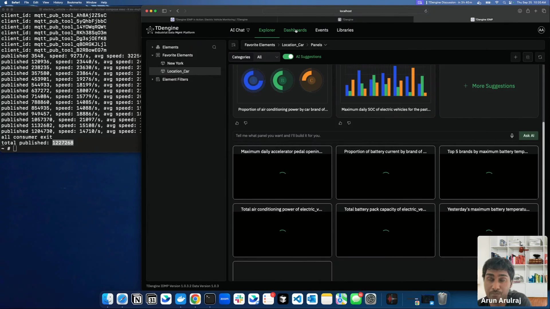 In this session, TDengine solutions architect Arun Arulraj will demonstrate how to build an end-to-end pipeline: ingesting EV telemetry data over MQTT, storing it efficiently in the high-performance time-series database TDengine TSDB, and transforming it into AI-powered dashboards with TDengine IDMP. In just 20 minutes, you'll see how to connect devices, manage large-scale data streams, and deliver instant insights for monitoring and decision-making.